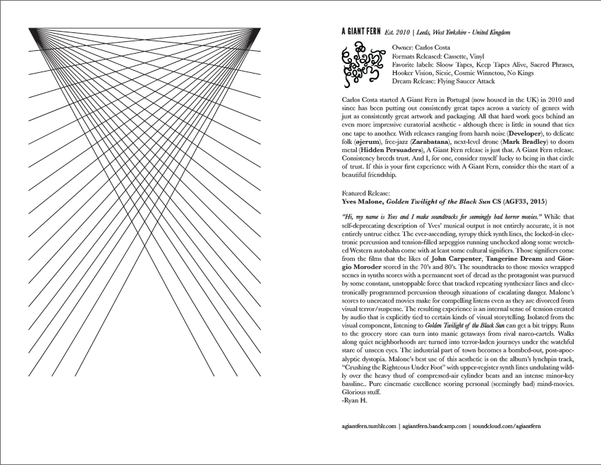 These were again dubbed with the help of our buddy Joey Wiley, so thanks are due to him (among many others) as well! With everything that goes into this package, this time we're asking for a little more, hope that's ok! We've got a streaming sample featuring excerpts from both sides of the tape, and also a little Q&A with Chaz Prymek further down below if you're curious! We'll also be taking these around to Wax Trax, Twist & Shout, Mutiny Info Café and Ironwood if you're around the Denver area and would like to save on postage. Thanks for visiting!
